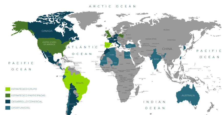 Diversificación Geográfica Aunque el reenfoque reciente ha fortalecido enormemente su peso en España (para capturar los aumentos de presupuesto en Defensa nacional y fondos europeos), Amper mantiene una presencia altamente estratégica en Latinoamérica (especialmente en Perú y Colombia, donde ganan recurrentemente contratos de seguridad y comunicaciones) y está expandiendo su huella comercial en el Norte de Europa e India, siguiendo a sus socios en el negocio eólico marino.