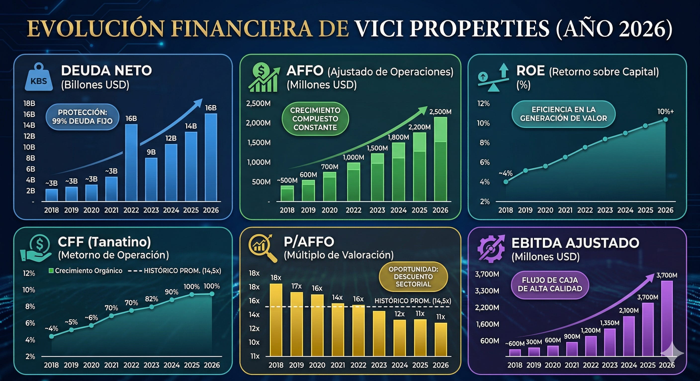 Deuda Total: A cierre de 2025, la deuda total de VICI asciende a unos 17.100 millones de dólares.
